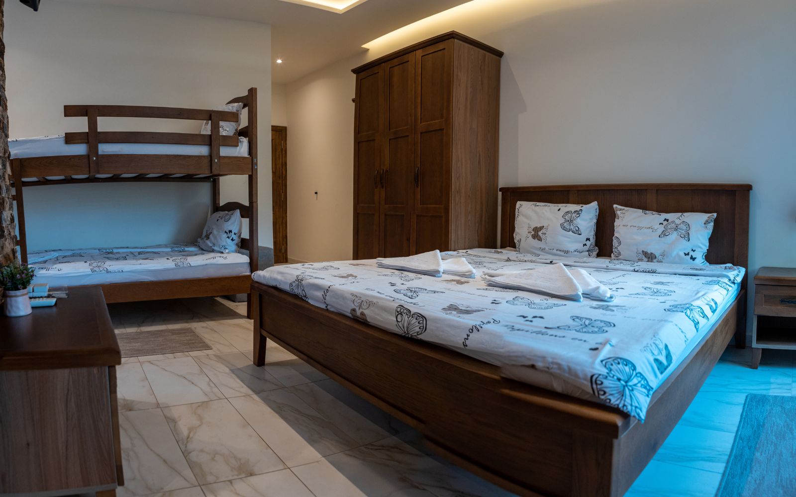 Francuski ležaj 2 + 2 (sprat) max. broj osoba 6 (odvojeno od restorana i spacentra)